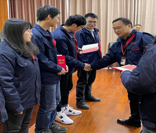 隨后,會議議程進入振奮人心的表彰階段。在2020年度工作中,公司涌現(xiàn)了一大批勤奮努力、盡職盡責、兢兢業(yè)業(yè)的先進個人和先進集體、優(yōu)秀班組,以及勤奮努力、謙虛好學(xué)、積極上進的正陽新秀,由副總經(jīng)理徐明東宣讀表彰文件,多位領(lǐng)導(dǎo)頒發(fā)榮譽證書,以資鼓勵。